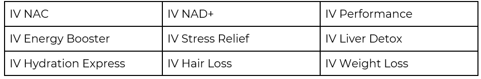 FACT: This couldn't be further from the truth. IV formulations vary widely and are often customized to address specific health concerns or wellness goals. Some common specialized formulations include: