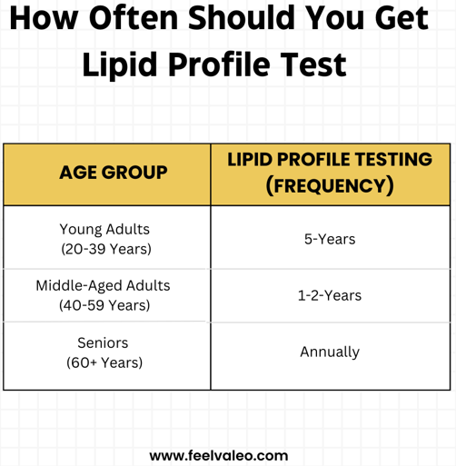 How often you should get a lipid profile test depends on your age, medical history, and risk factors. For young adults, testing every 5 years may suffice, but for middle-aged and older adults, more frequent monitoring is essential. People with existing conditions or a family history of heart disease may need tests annually or even more often.